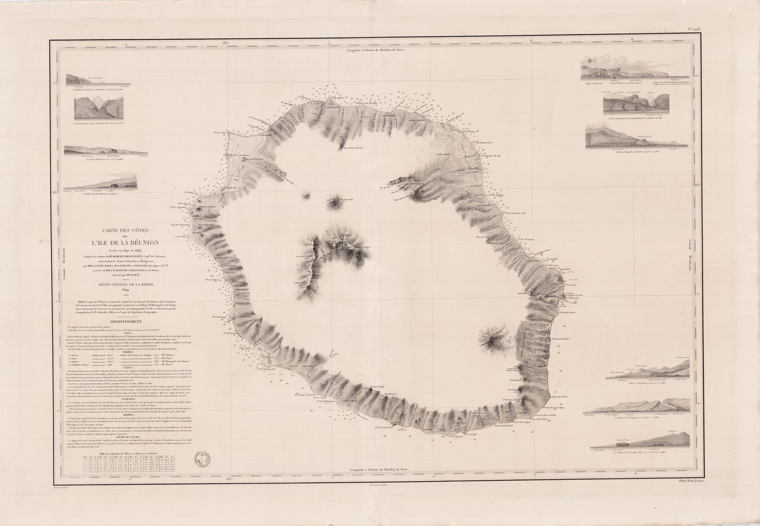 Carte des côtes de l’île de la Réunion