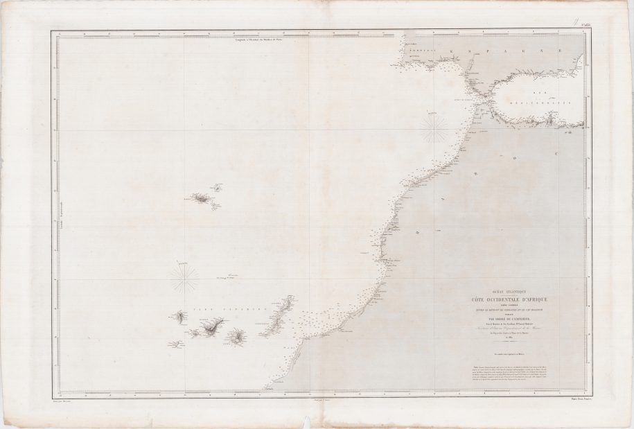 Côte occidentale d’Afrique entre le détroit de Gibraltar et le cap Bojador Atlas 12 kort 1836 År 1860 Storlek 65×59 cm