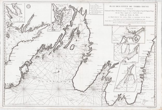 Infällda kort: - Havres d'Aquafort et Fermouse - Havres du cap Broyle et Ferryland - Bulls-Bay et Witless-Bay Atlas 14 kort 0327 År 1784 Storlek...