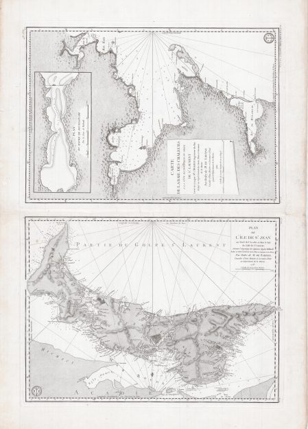 2 kort. Infällt kort: Plan du havre de Ristigouche Atlas 14 kort 0329 År 1778/1780 Storlek 59x65 cm
